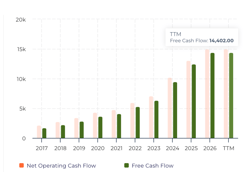 Operating Cash Flow and Free Cash Flow Chart Powered by StockOracle™