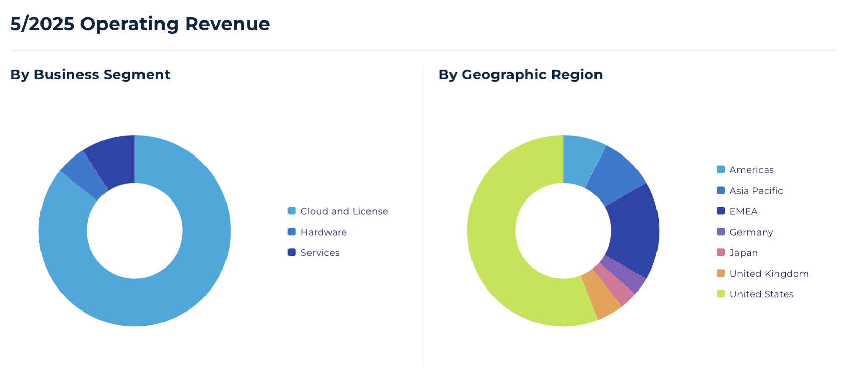 As the revenue breakdown above shows, Cloud and License accounts for the overwhelming majority of Oracle's operating revenue, with the United States and EMEA representing the largest geographic contributors. This concentration is worth noting: Oracle's growth story lives and dies on how quickly its cloud business scales.