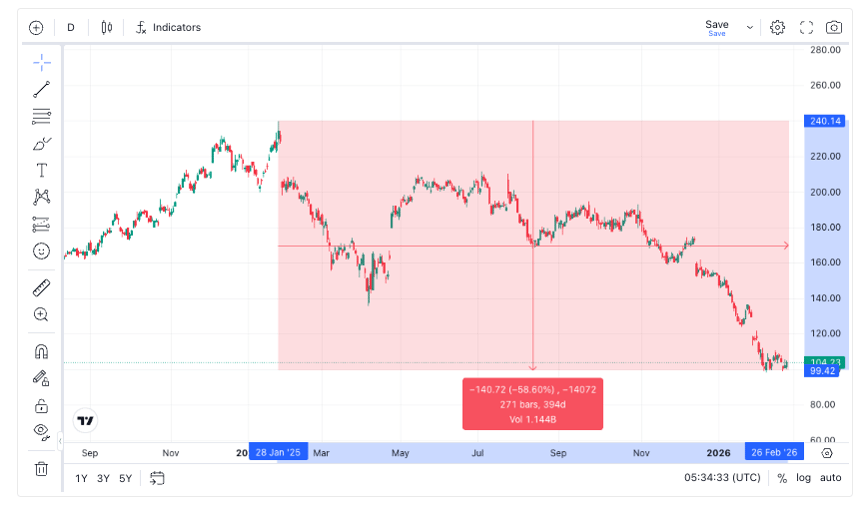 Despite reporting strong financial results, ServiceNow (NYSE:NOW) has experienced a significant decline, dropping almost 60% since its peak in January 2025. The core concern among investors is whether the rise of agentic AI will disrupt the conventional "seat-based" Software as a Service (SaaS) model such as Salesforce.