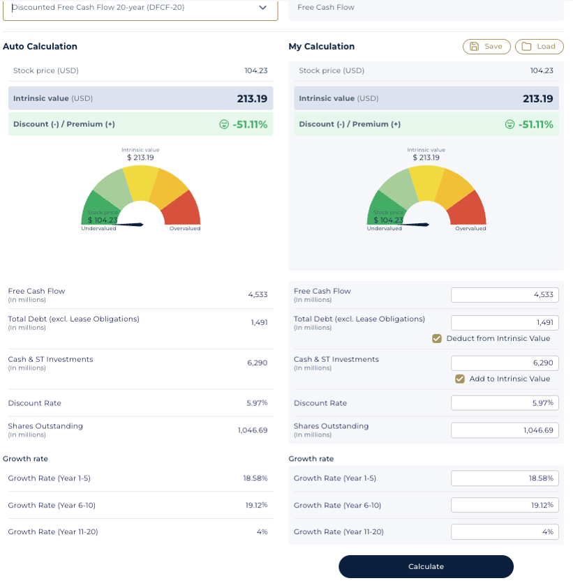 StockOracle™ Intrinsic Value Calculator using individual growth assumptions