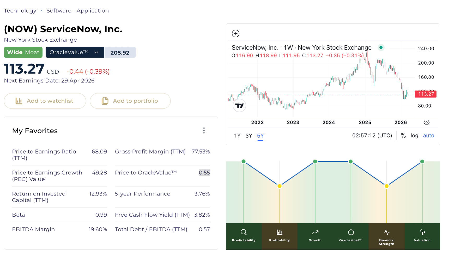 OracleValue™ intrinsic value modeling estimates a value of $206.50 per share, implying a Price-to-OracleValue™ ratio of 0.55.
